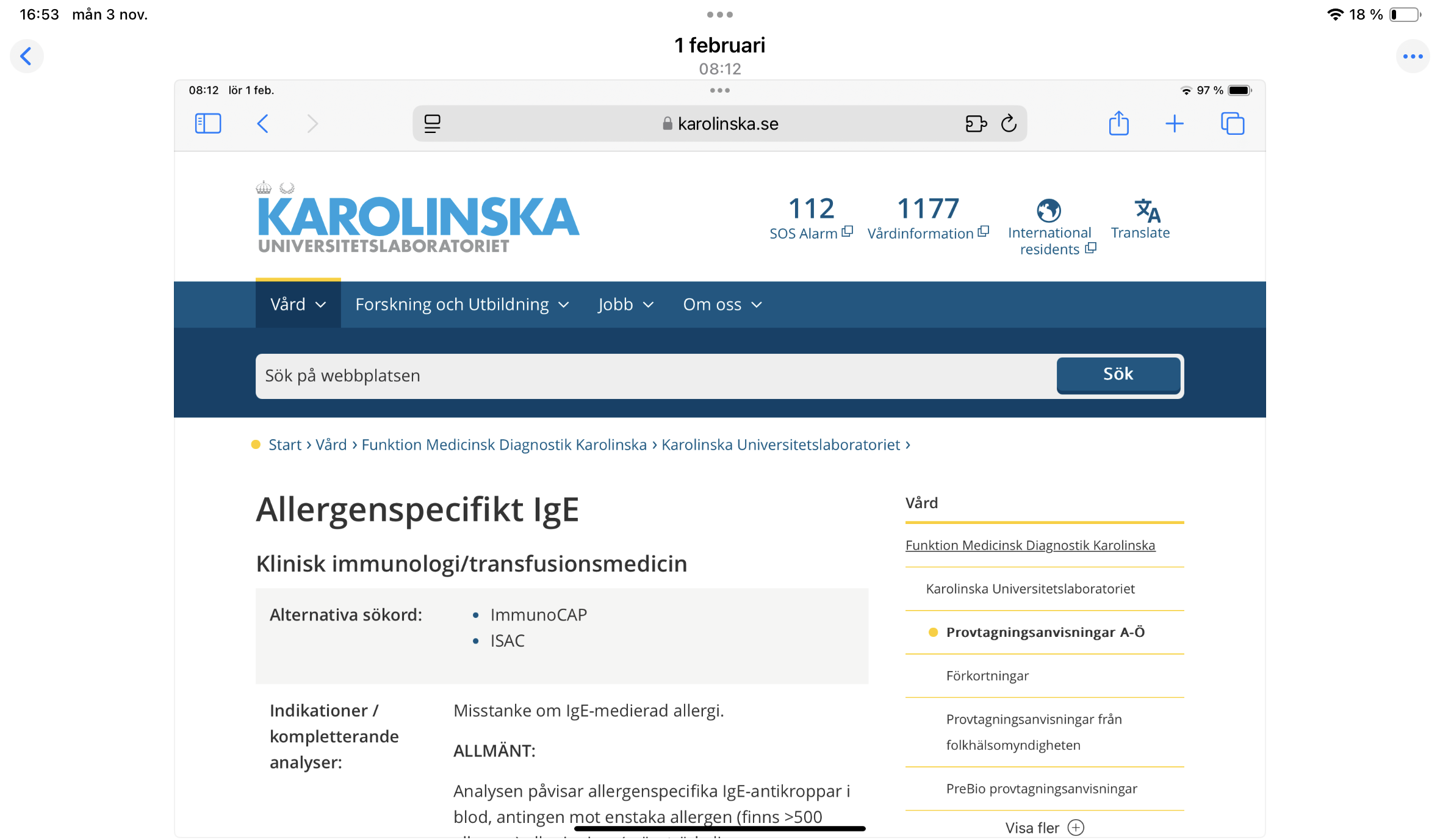Tyvärr finns det ingen information på patiensidorna på 1177. Dock finns det information för vårdgivare i form av ett Vårdförlopp för matallergi. Det här dokumentet innehåller en del information om alfa- gal. En uppdatering pågår där det också kommer finnas mer information. Från föreningen arbetar vi med att även patientsidan ska ha information.